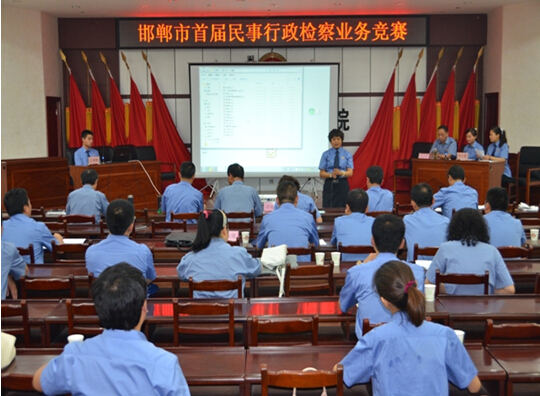 为加强民事行政检察队伍法律监督能力培养,根据年初民行检察工作的部署安排,市院政治部、民事行政检察处于2014年7月初利用四天时间举办了“首届全市民事行政检察业务竞赛”。竞赛包括“民行检察综合业务知识笔试”、“案件审查与文书制作”、“案件汇报与答辩” 三个阶段。全市推荐选拔出24名民行检察干警参加了竞赛,展示了参赛干警的实力与水平。民行检察干警50余人亲临现场观摩。通过竞赛、练兵,切实达到了互相学习、取长补短、共同提高的目的。