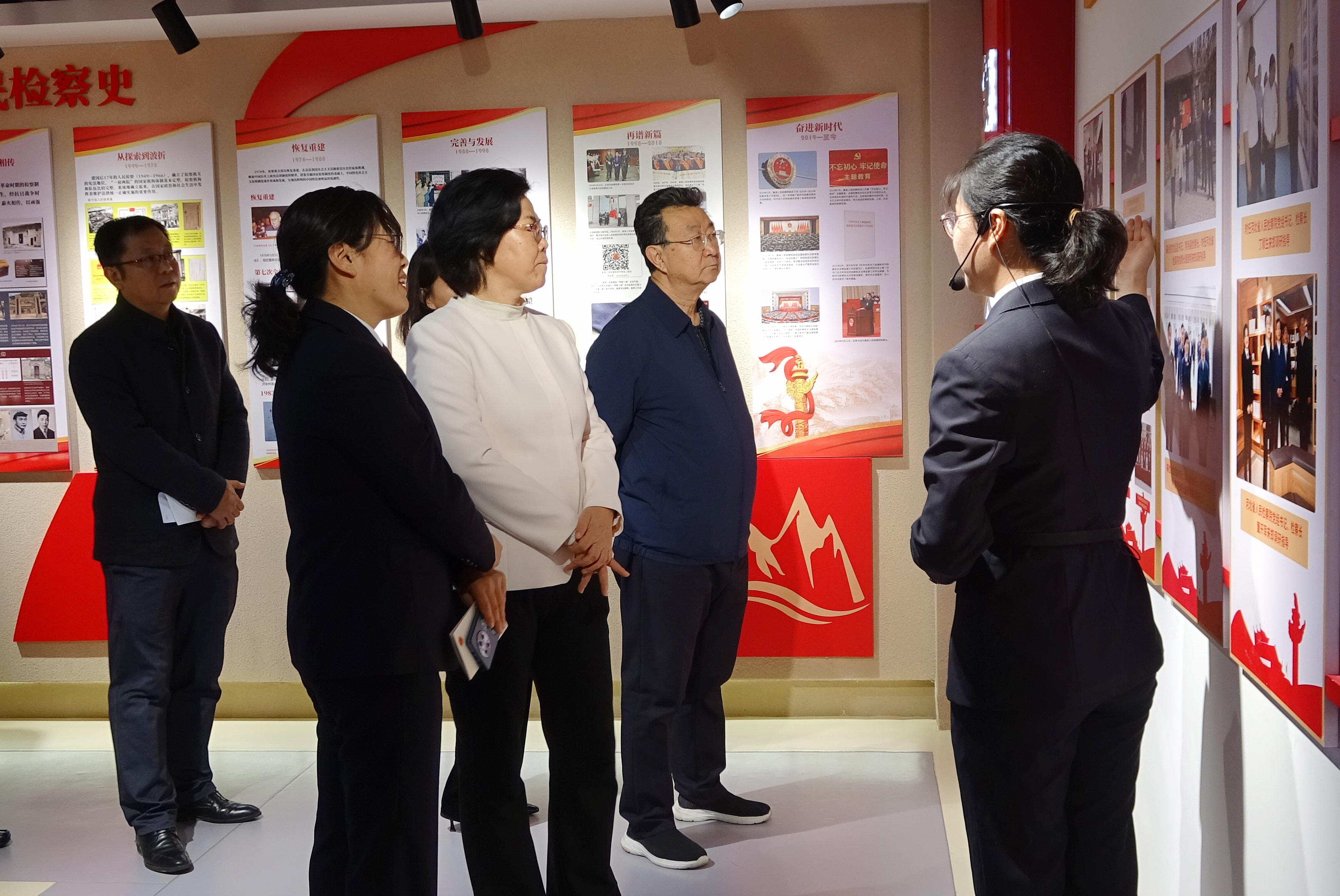 视察组一行参观市检察院院史馆、图书馆、公益诉讼快检实验室和公益诉讼指挥中心。