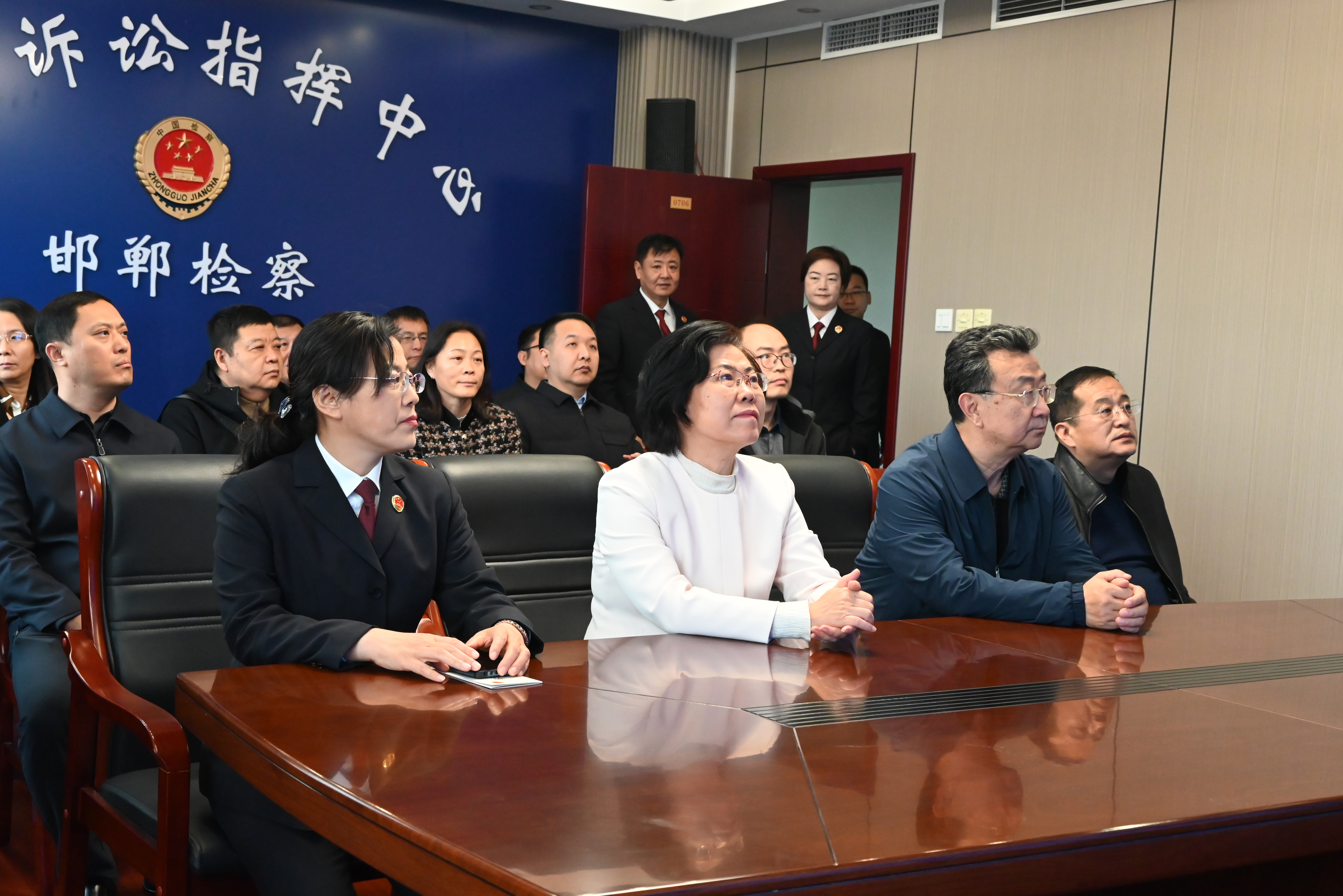视察组一行观看市检察院“燕赵山海·公益检察”工作纪实片。
